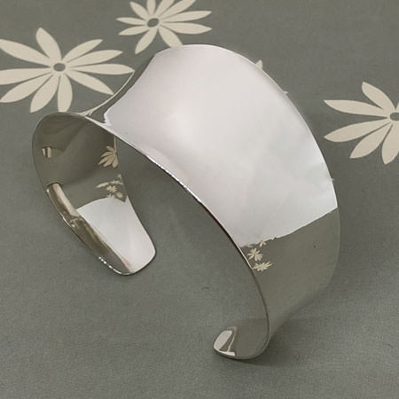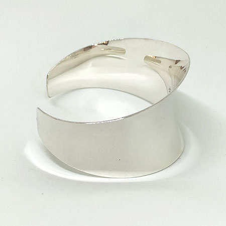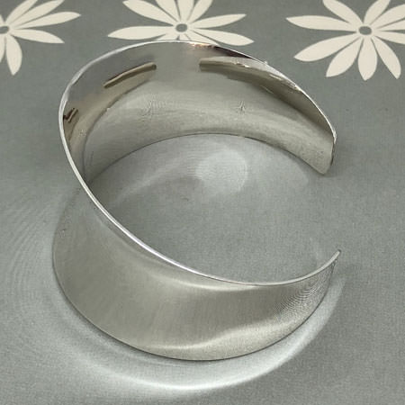 This sterling silver cuff is handmade in Australia using an anticlastic forming technique. This ensures a strength in the silver and allows a little flexibility without risk of damaging the shape.
