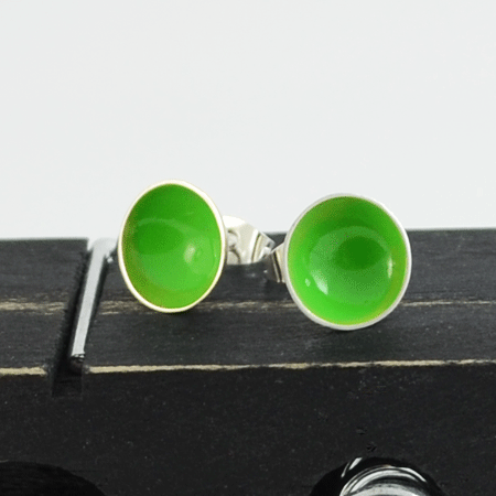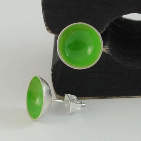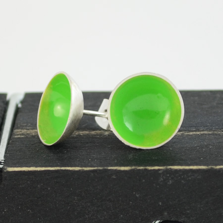 These sterling silver stud earrings are handmade and have been given a fresh green colour on the inside.