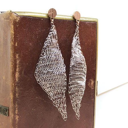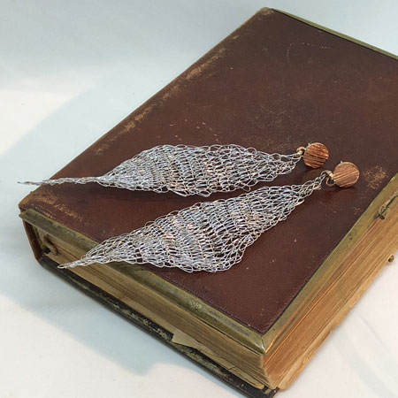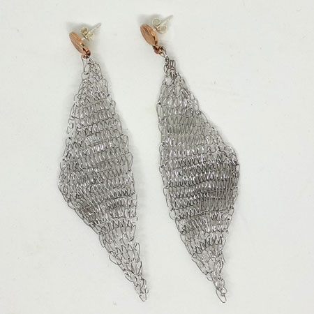The earrings are crocheted by hand from fine stainless steel wire in a loose and whimsical style and attached to copper studs.