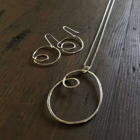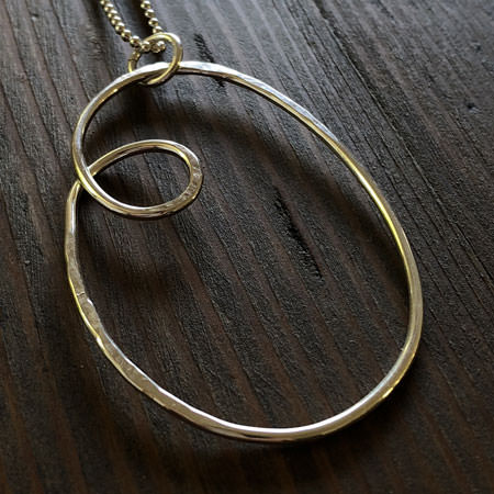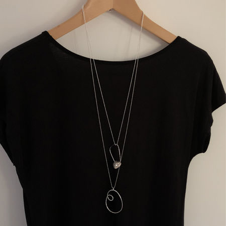 A long silver necklace with a large handmade pendant. This Australian pendant has a freely shaped oval with a little internal loop so no two pendants are exactly the same. The loop is partly hammered and hangs freely on a sterling ball chain.