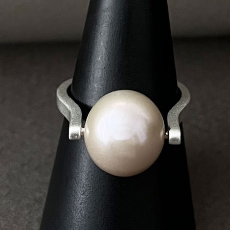 The pearl is a 10mm freshwater suspended in a 2mm sterling silver band.