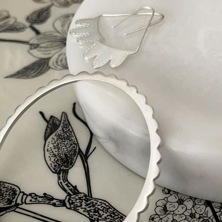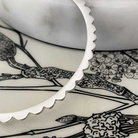 Modern silver bangle with scalloped edge