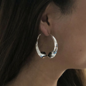 These amazing handmade sterling silver hoop earrings are made by using traditional techniques such as hand forging and anticlastic hammering.