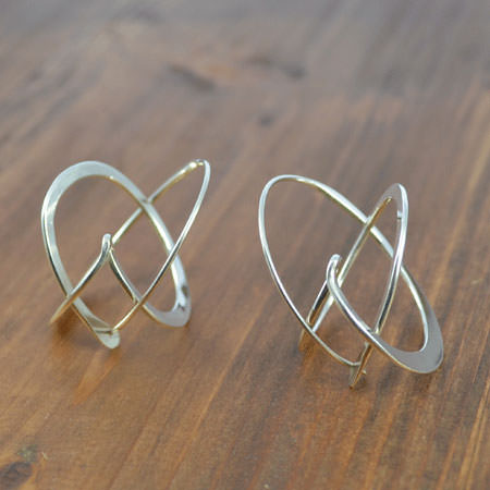 These amazing Australian sterling silver earrings are handmade by using traditional techniques such as hand forging and anticlastic hammering. This creates the superior flex in the silver which is needed for the design.