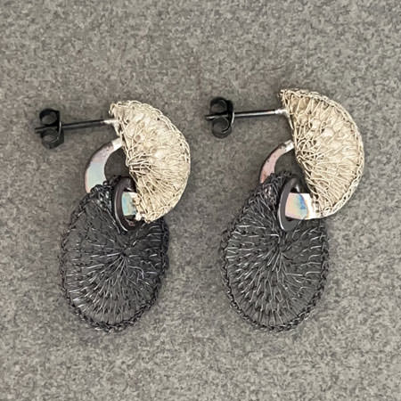 Designed by the talented Italian jewellery designer and handcrafted by skilled Balinese artisans, these earrings are made with care and attention to detail. Crafted from fine brass wire, the earrings are carefully crocheted, silver plated, and partly oxidized to give a contrast of colour. Their understated design makes them ideal for everyday wear, adding a touch of elegance without being too bold.