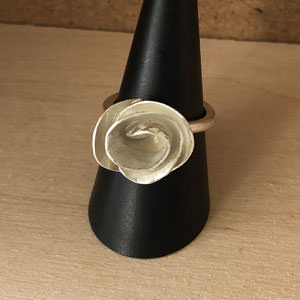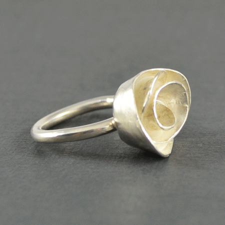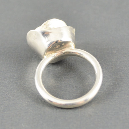This sterling silver rose ring is handmade with each little petal formed and set by hand. The rose head is filled with white resin for a soft look.
