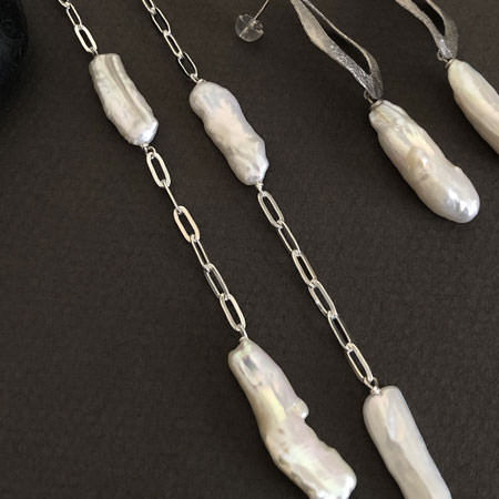 Biwa pearls derive their name from Lake Biwa in Japan where they were originally cultivated in the lake’s Biwa pearl mussels.