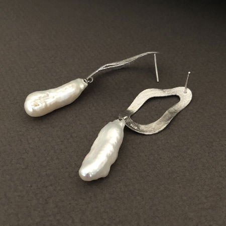 Biwa pearl silver drop earrings