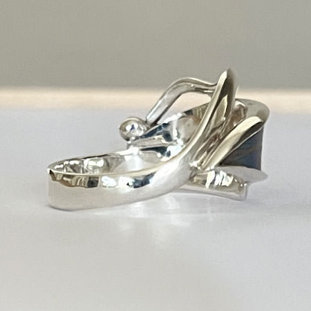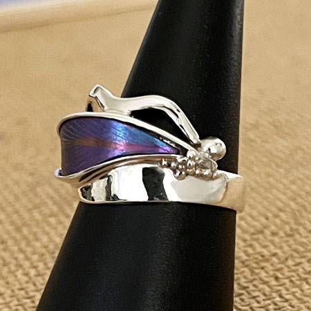 This elegant ring is handmade by Brian Eburah from Wales who takes his inspirations from nature. His designs start out as intricate drawings and come to life in sterling silver and niobium. If you wish to learn more about Brian and niobium, check it out here.