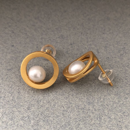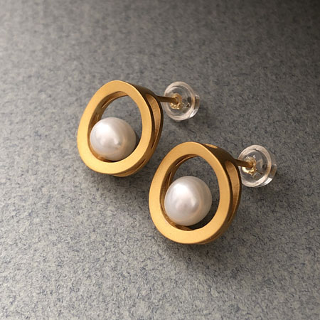 The pearl studs are elegant and modern in their design and have a warm glow with their matte gold finish.