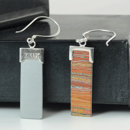 A special technique is used to photo-anodise the aluminium and afterwards the earrings are handcrafted with a sterling silver detail and the result is a vibrant pair of truly Australian silver earrings.