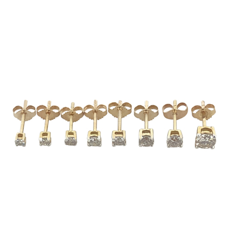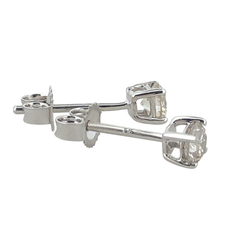 The diamond stud earrings are available in solid 9ct white gold in varying diamond sizes. The carat weight is the total diamond weight of the two diamonds and range from a tiny total diamond weight of 0.10ct to larger 1.00ct.