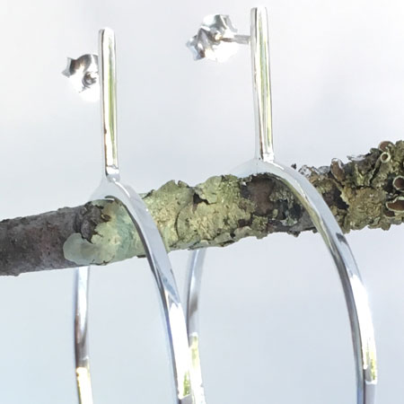 These sterling silver hoops earrings have the hoops dropped and put on a post giving them a distinct contemporary edge and personality. If you don’t normally wear hoops, these are a great alternative.
