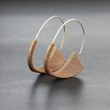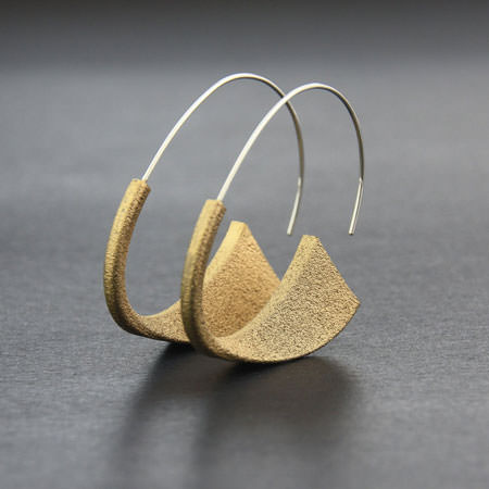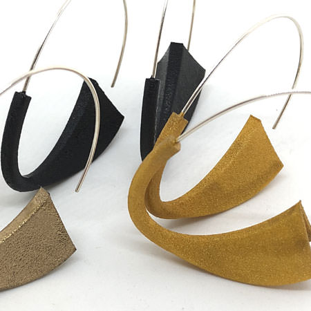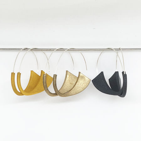 These Australian made earrings have 3D printed acrylic shapes which have been painted with glittery acrylic paint. They are very lightweight and comfortable to wear and hangs on sterling silver ear wires.  This is a different take on your normal silver hoops and you can choose from 3 different colours: black (sold out), gold or copper.