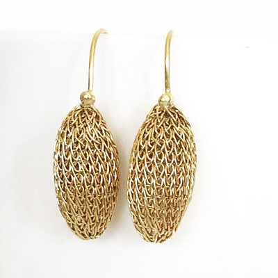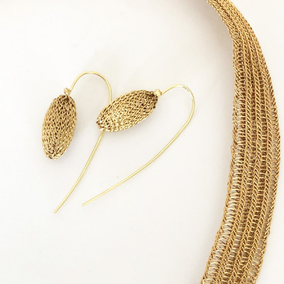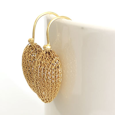 The earrings are crocheted in fine bras wire and are plated in 24ct gold. They are perfect for everyday wear and to accompany other Milena Zu jewellery.