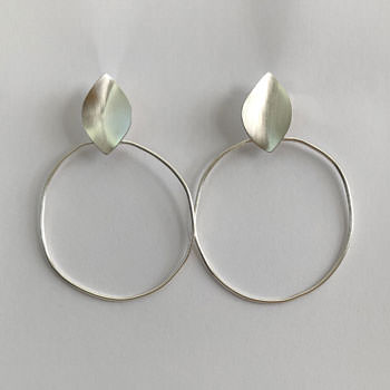 These hoop stud earrings are handmade with their handcrafted leaf and organically shaped hoop and therefore no two pairs will be exactly the same.