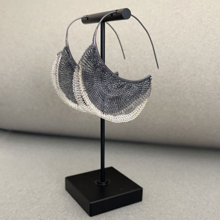 They measure 65mm in length from the top of the ear wire and 55mm wide. If you head to our Milena Zu jewellery page, you will find more of her unique mesh jewellery and necklaces and bracelets to complement these large hoop earrings.