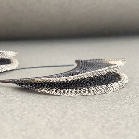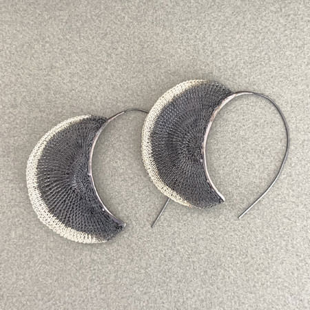 Handmade by skilled Balinese artisans, these hoops showcase an ancient crocheting technique that brings Milena’s creative vision to life. Each pair is meticulously crafted from fine brass wire. Then plated in silver, and partly oxidized to create a beautiful contrast of colours. The design features two crocheted half circles attached to large open ear wires. The result are earrings that are as dramatic as they are refined.