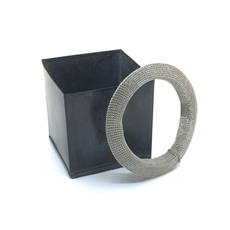 This Milena Zu mesh bangle has a distinctive edgy flavour in its organic, handmade shape and its stainless steel.