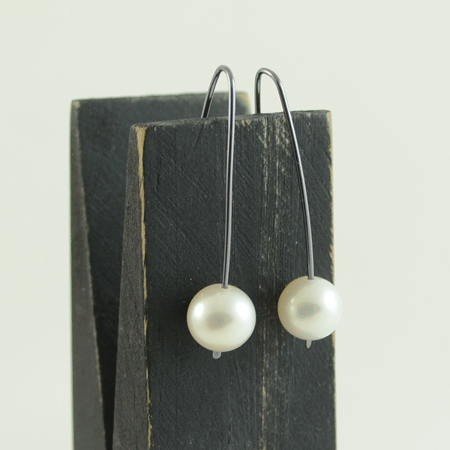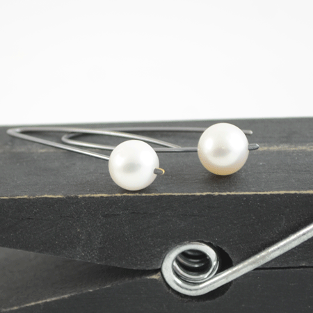 The sterling silver pearl earrings have been given a dark oxidised look which makes for a contemporary pair of pearl earrings. Always elegant and always versatile, perfect for unique go-to earrings for busy mornings.
