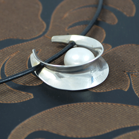 The shape of the sterling silver pendant reminds you of a horse shoe nestling a white freshwater pearl.