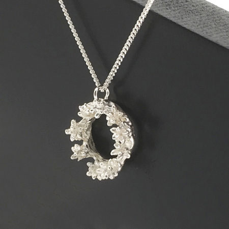 The wreath is 15mm wide and it comes on a 42cm fine sterling silver chain.