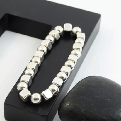 A slightly different take on your standard silver ball bracelet.