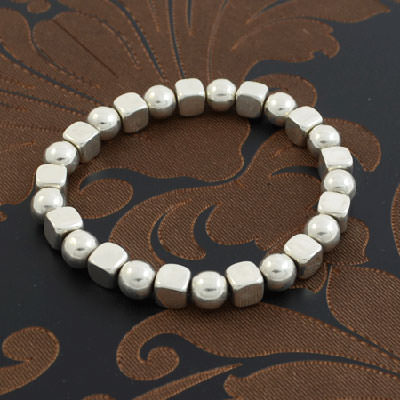 This pretty silver bead bracelet has alternating square and round sterling silver beads. It is a perfect addition to your jewellery box and for every day wear. It is unique worn on its own and also perfect for stacking with other bead bracelets.