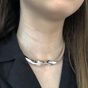 The necklace is handmade to last a lifetime with a timeless and classic twist design but a strong contemporary touch. The silver has been shaped and worked to have flexibility and strength so you can put it on with ease and the choker will naturally return back to its original shape.