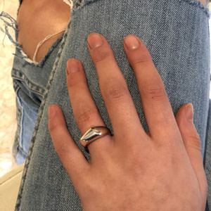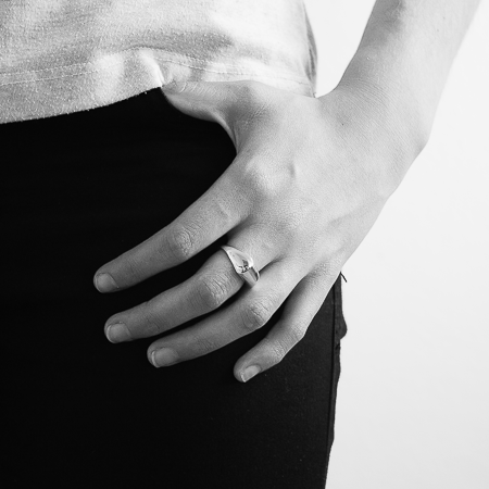 This Australian sterling silver ring is silky smooth with its highly polished silver and soft, architectural angles.