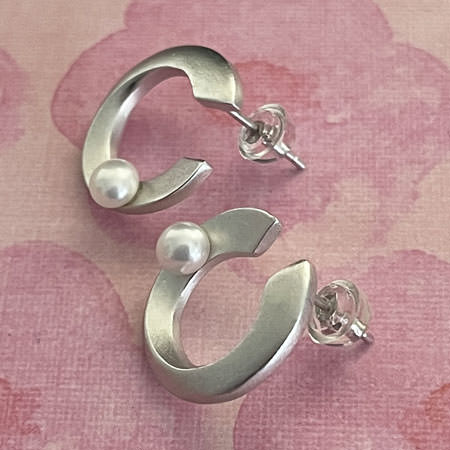 These sterling silver pearl earrings are an excellent choice for your work outfit and your every day wear if you like your pearl  jewellery a little different.